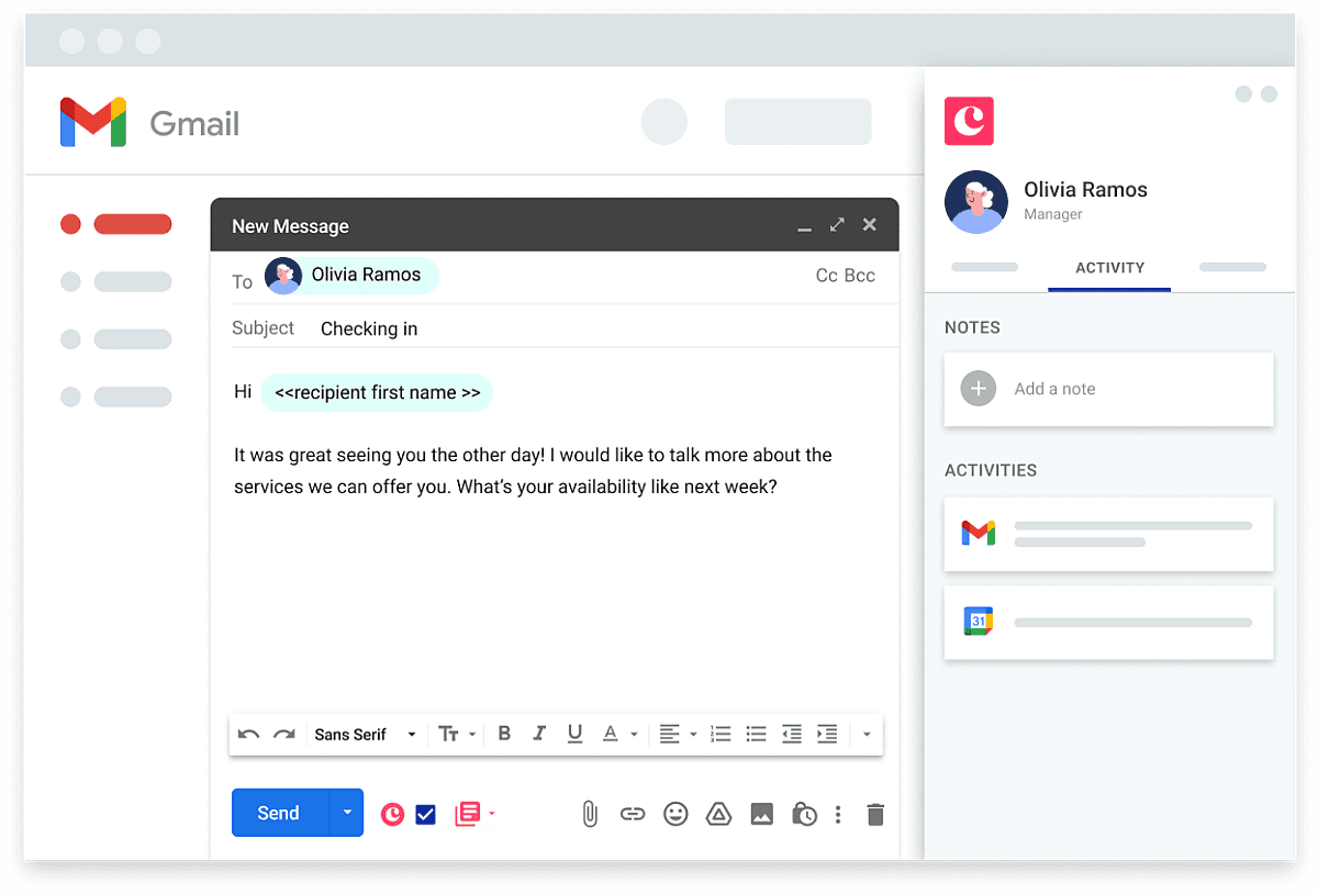 Speed up your emails by adding merge fields that bring in names, emails, phone numbers and other custom fields.