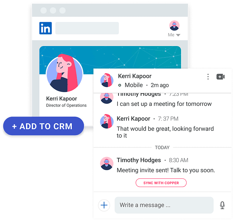 Add LinkedIn or Sales Navigator prospects to Copper with 1-click, and sync all direct message conversations.