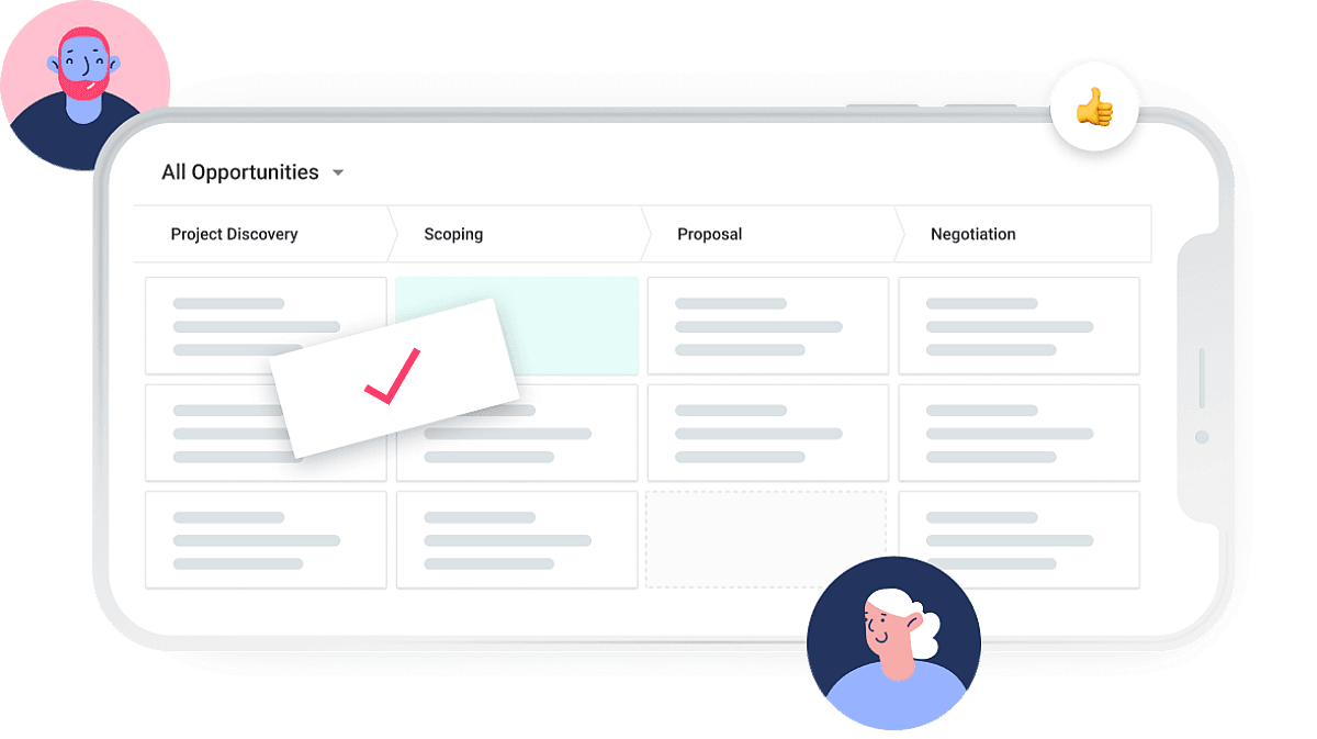 View the health of your entire sales pipeline from the palm of your hand with our mobile sales pipeline software. Easily sort, filter, and view activity and track updates in real time to keep deals moving forward.