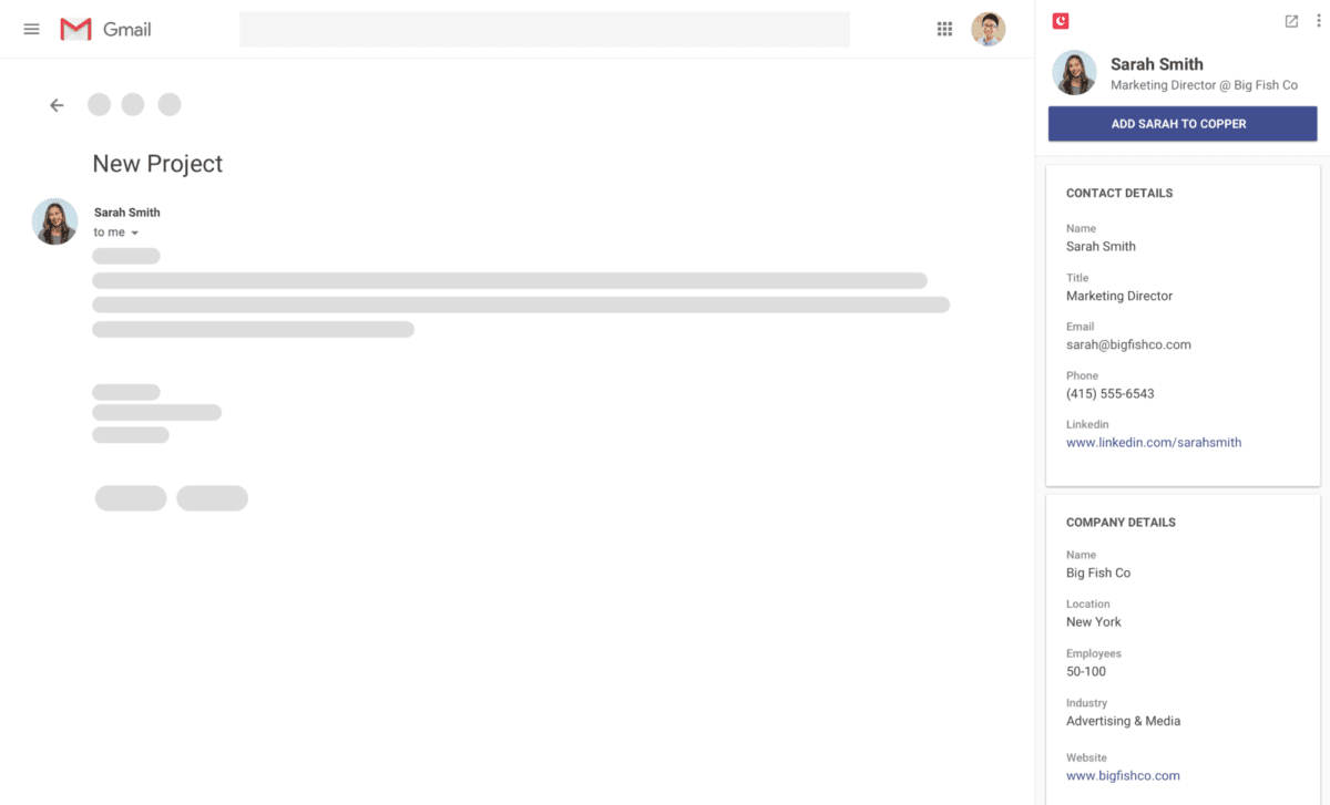 Want to add a new lead or prospect into your CRM solution? Copper automatically looks for your contacts' information on the internet and adds it to your contact database. Yet another thing you don't have to type out anymore.